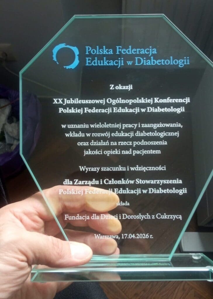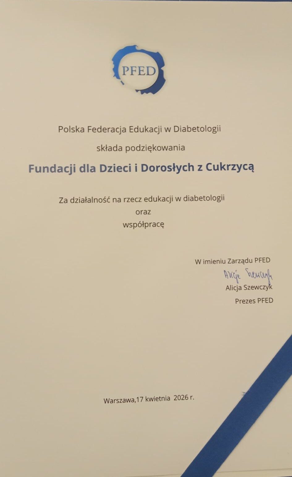 Dziękujemy Polskiej Federacji Edukacji w Diabetologii, za to że docenia naszą pracę i starania!