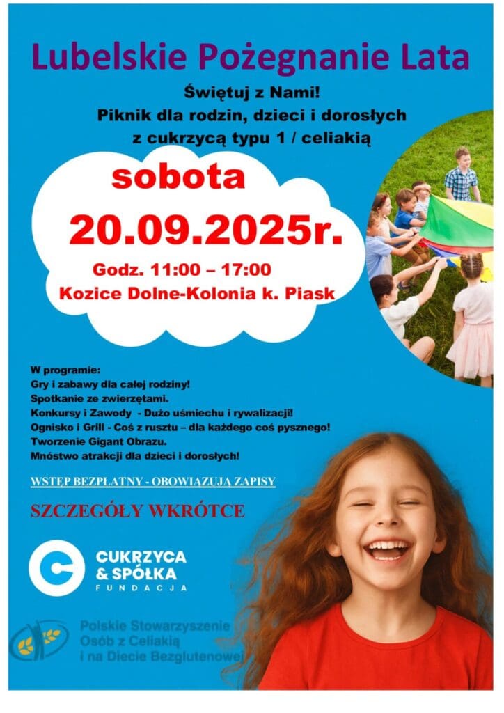Nasza Lubelska Grupa Wsparcia wraz z Polskim Stowarzyszeniem Osób z Celiakią i na Diecie Bezglutenowej zapraszają na Piknik Rodzinny dla dzieci, dorosłych i rodzin z cukrzycą typu 1 oraz celiakią