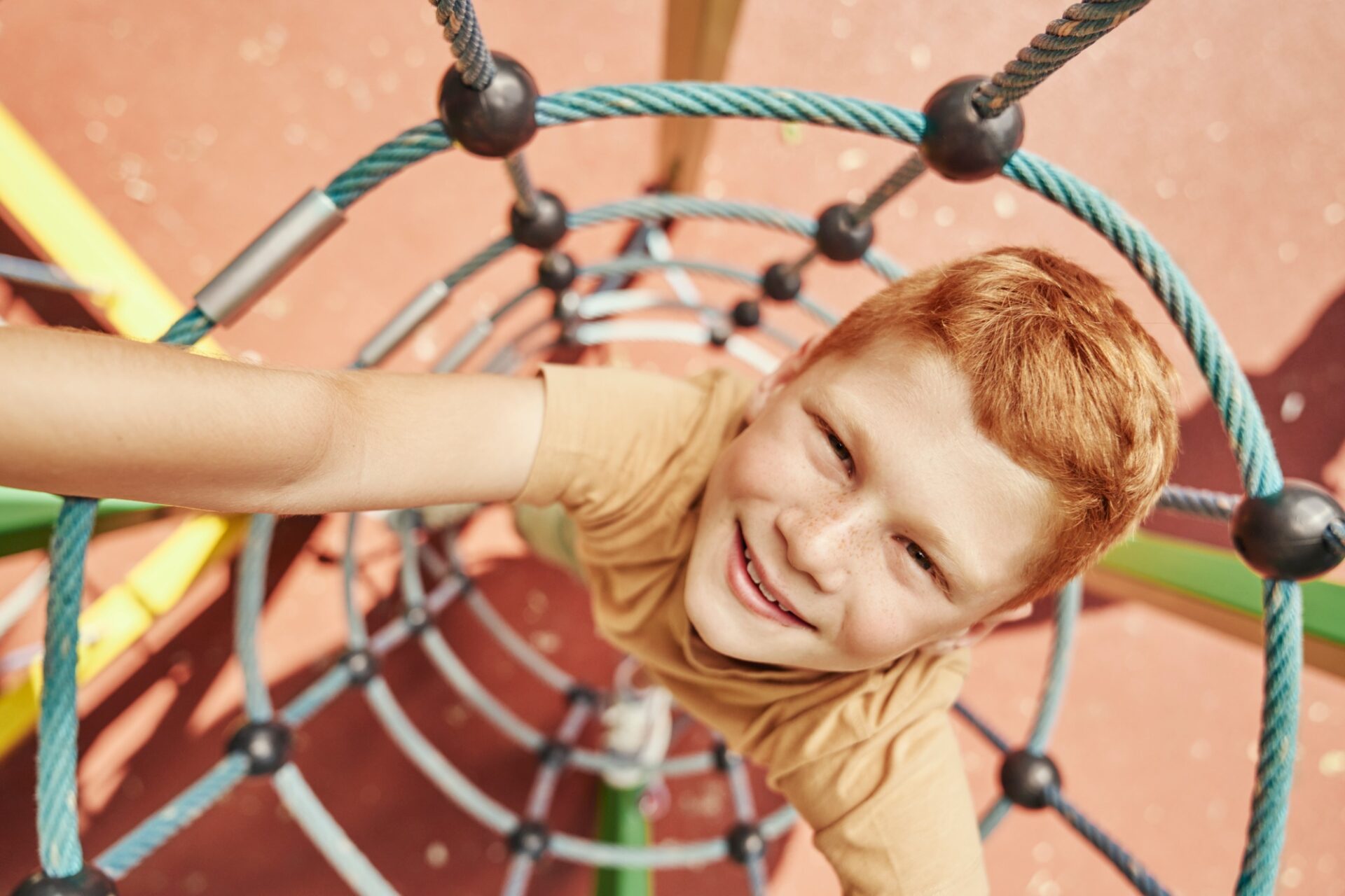 Ginger boy climbing at the playground